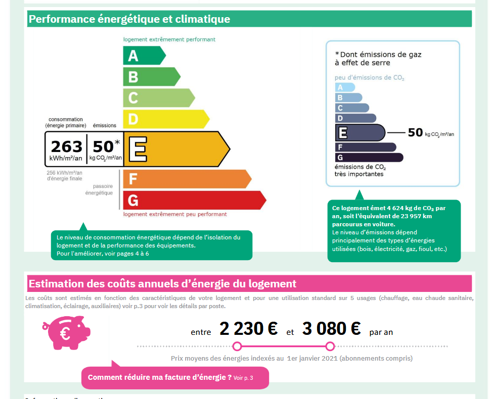 Consommations énergétiques - D - 263 kWh/m²/an.